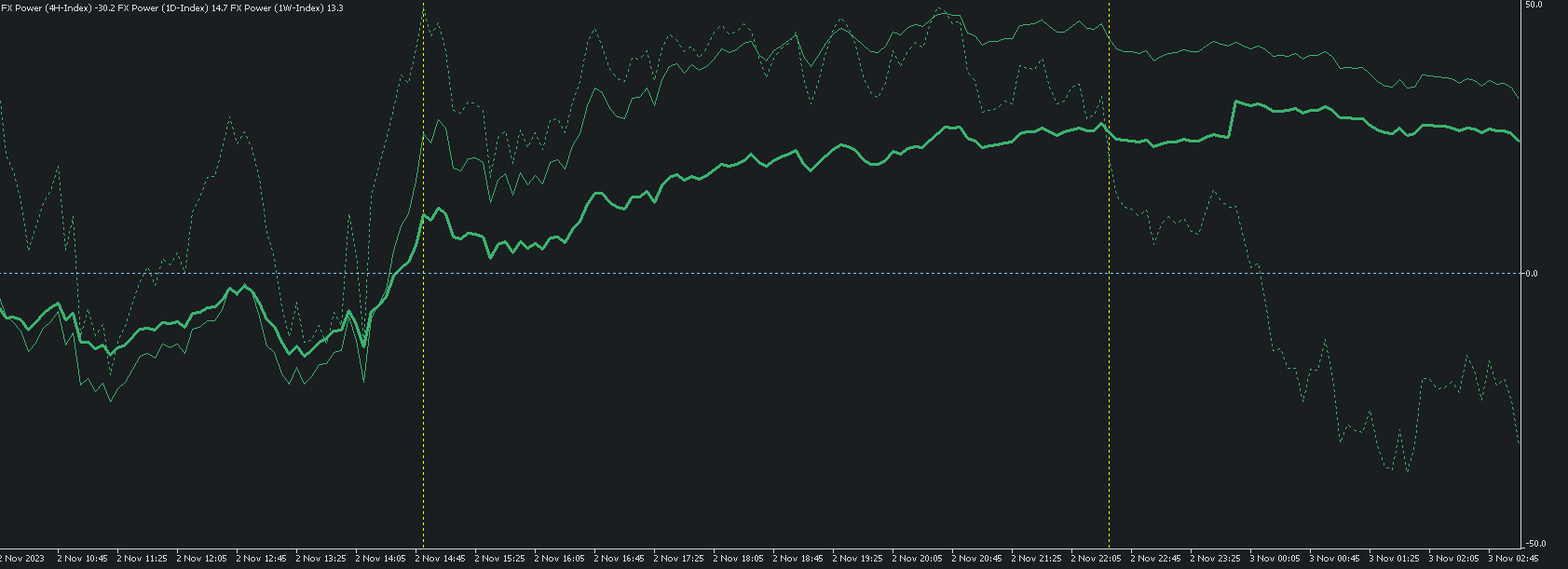 IX Power provides precise strength analysis for indices, cryptos, oil, etc. based on the same algorithm as FX Power but using only the underlying symbols' data.