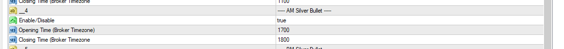 Is it possible to have 3 time settings. The first 2 time settings are the window that it looks for FVG's, and the last time setting is the trade close setting. So in the case below it would look for FVG and open limit orders between 17:00 & 18:00 but only close the orders at another time say 23:00.
