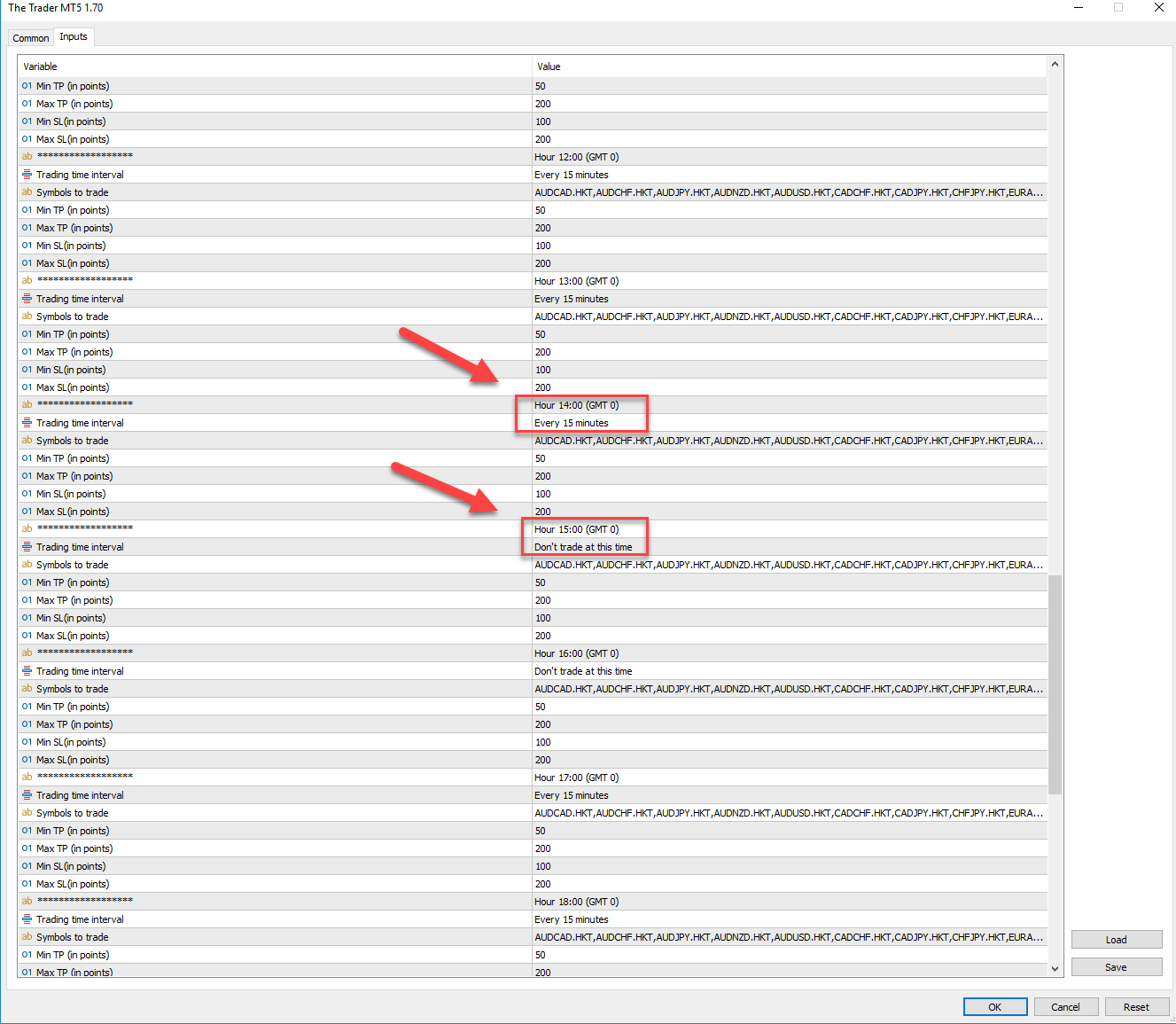 I have a question regarding time zones in the settings. The broker I use is Hanktrade and I know that they are GMT+2. Do I need to change these in settings? If so, what would they be? Also some of the hours say "don't trade at this time", Why is that and if that is the case, I am assuming that if these times are off due to different brokers, that could mean the difference between success and failure.