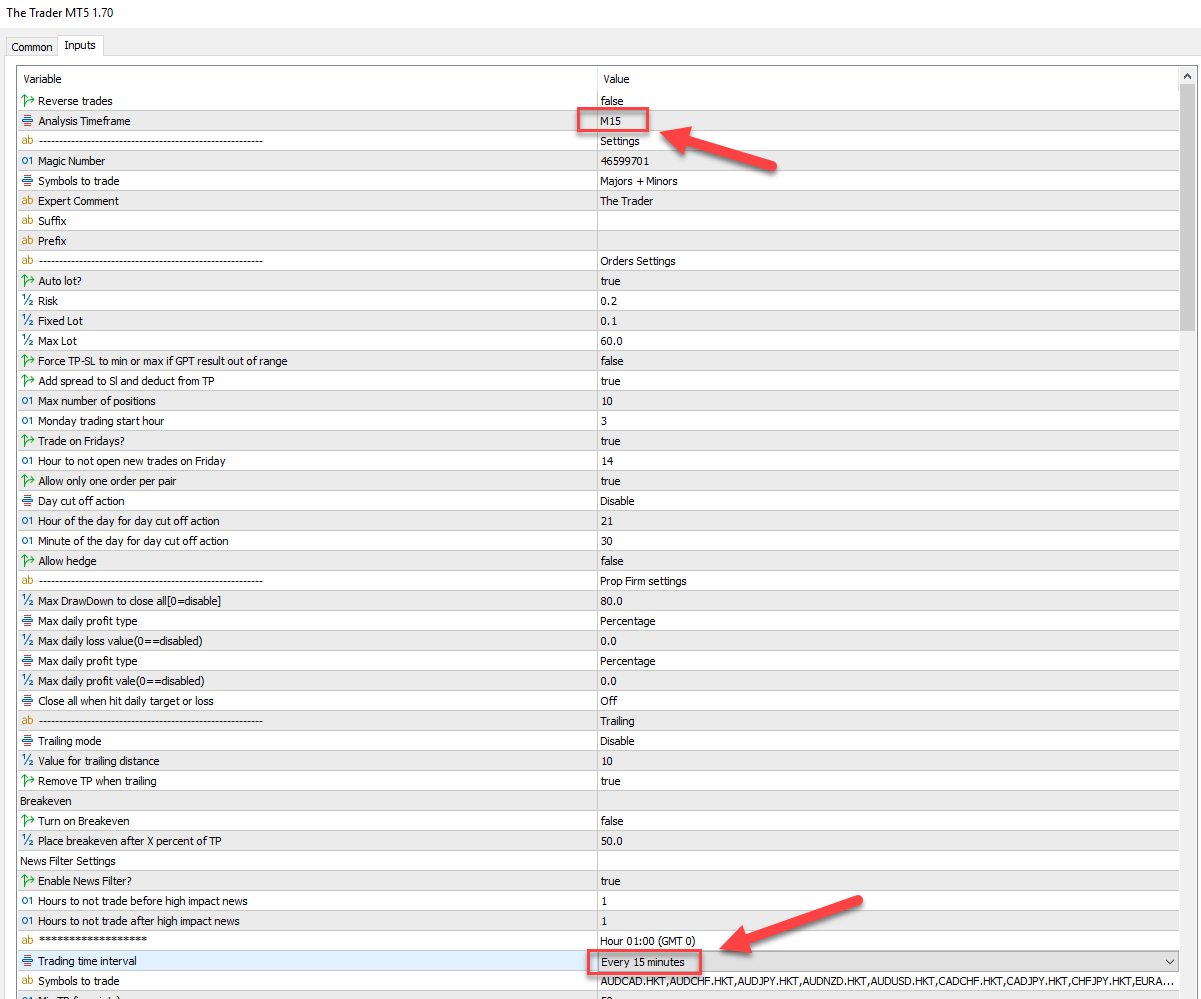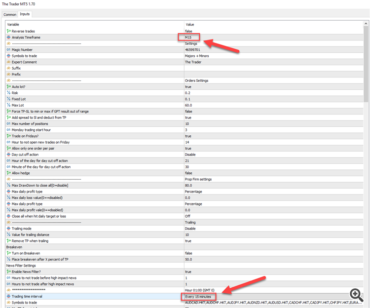 I noticed your instructions say that the M5 Timeframe is the best. Is that still the case? If so the defaults are all set to M15 time frame, right? If I want to change to the M5 Timeframe, Do I need to change both the "Analysis Timeframe" and the "Trading Time Interval"? to M15 and Every 5 minutes?