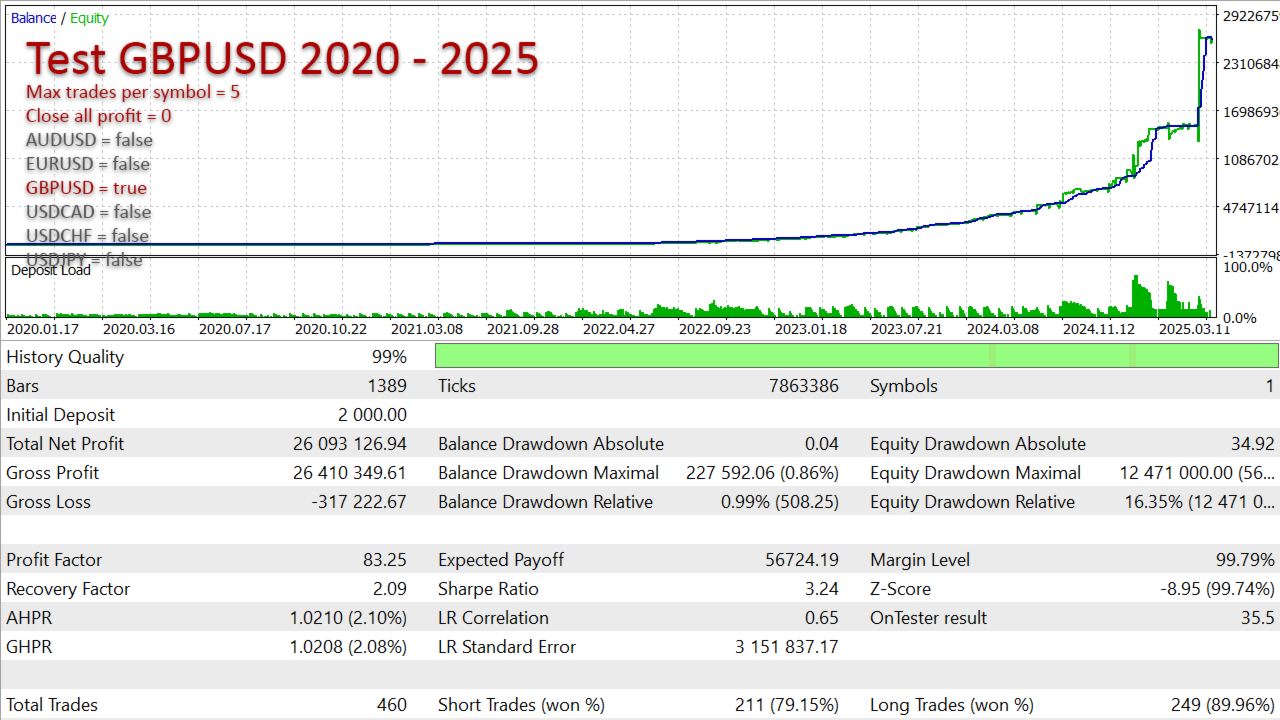 - Stoploss >> the EA manages trades internally based on its calculations. The stoploss serves more as a nominal safeguard.