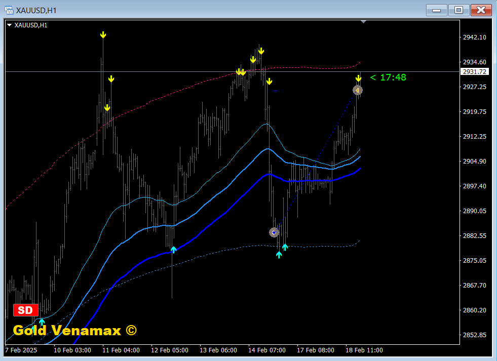 TMA has been added to the Gold Venamax indicator. The TMA channel border (lower or upper) can also be used to fix profits and/or for risky trading against the trend with a short SL.