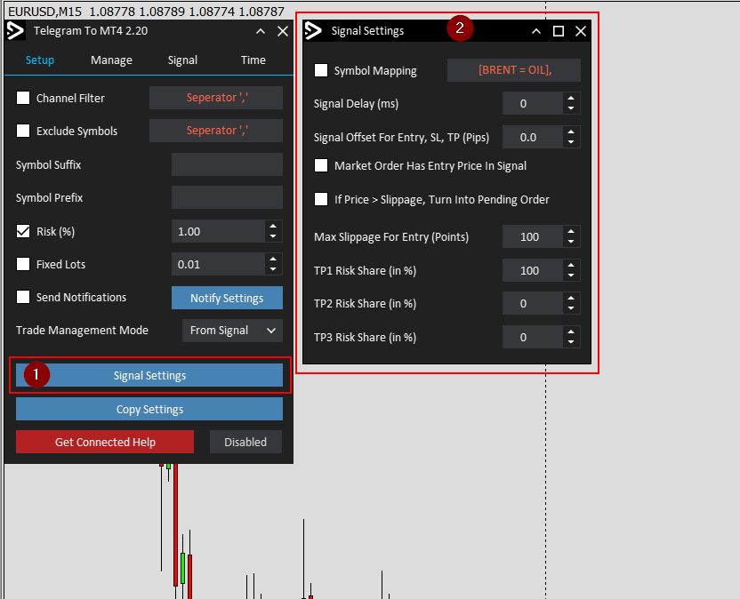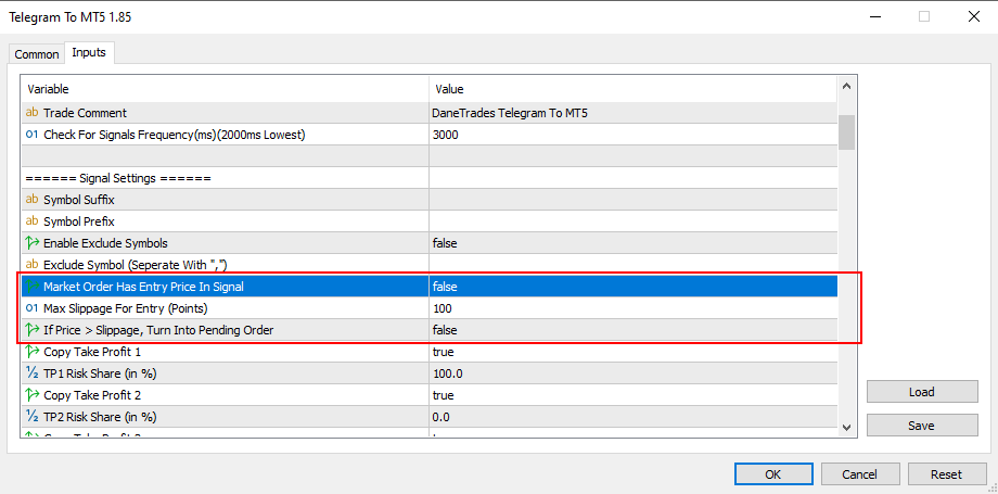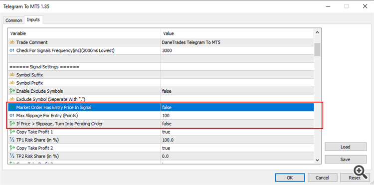 - If using the Entry Signal has price option but a signal does not have an entry price it will still enter at market