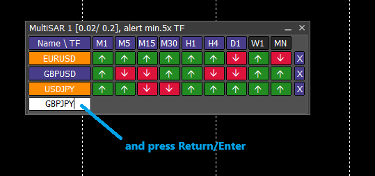 Enter the symbols one by one in the white field at the bottom of the dashboard.