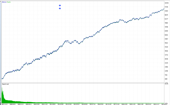 Maximal Drawdown: The maximum balance drawdown was $5,282.83, representing a 9.88% reduction from the peak balance. The relative drawdown was 49.72%, a measure of the decline concerning the highest equity point.
