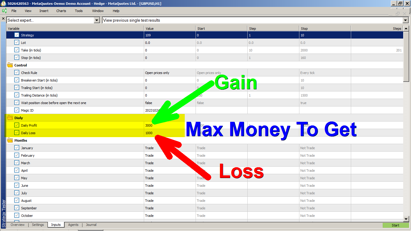 On the other hand, if instead of winning the robot starts losing, then you also have a daily loss limit with the Daily Loss