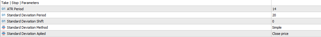 When you use a Stop or a Take or a Trailing based in ATR indicator or Standart Deviation Indicador, so you can set their parameters for here