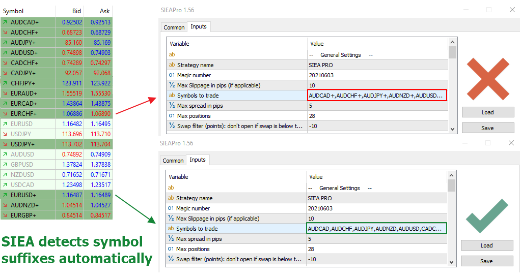 A: Yes, of course. Run your SIEA on one of these symbols, like EURUSD+ and it will detect and use the suffix automatically.