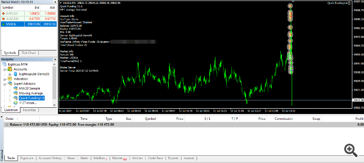 يبدو إنهاء تحديات شركة الدعامة في يوم واحد أمرًا مذهلاً! بالإضافة إلى ذلك، فهو يعمل في حساب ممول بإستراتيجية الاختراق، على عكس روبوتات HFT الباهظة الثمن. والدعم سريع للغاية ومفيد أيضًا!