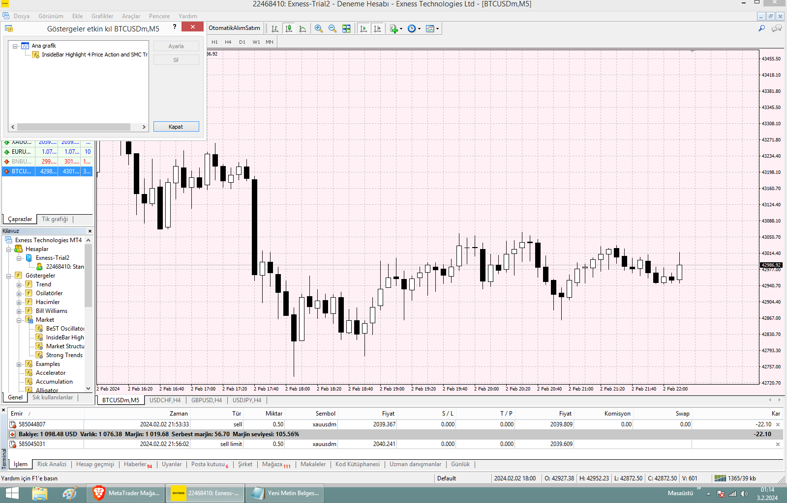 I have 2 charts here, both of them was installed the insideBarIndi.