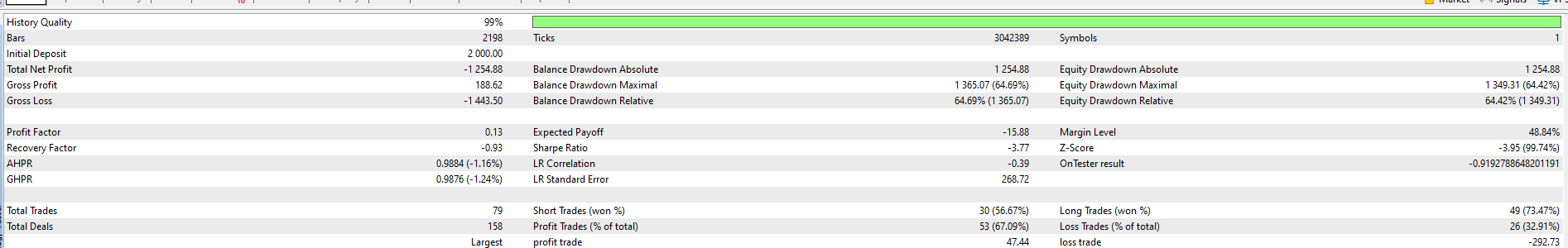 EURUSD also also made a loss. Stats below for M15 with 1 year.