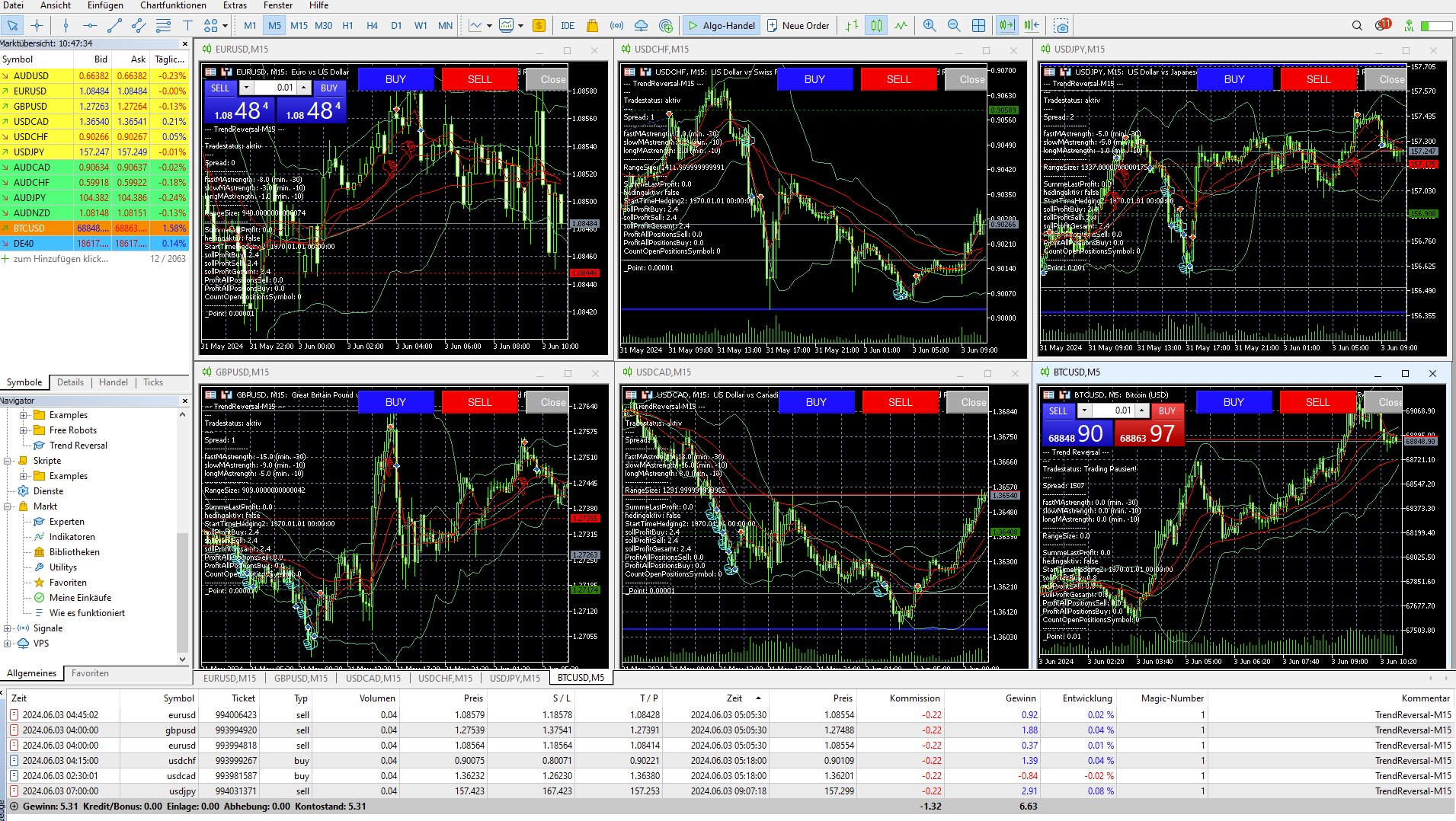 I trade 5 Currencys (BTCUSD only on Weekend). With Lot 0,04 and Deposit of 3.500. IC Marcet Account with 1:30.