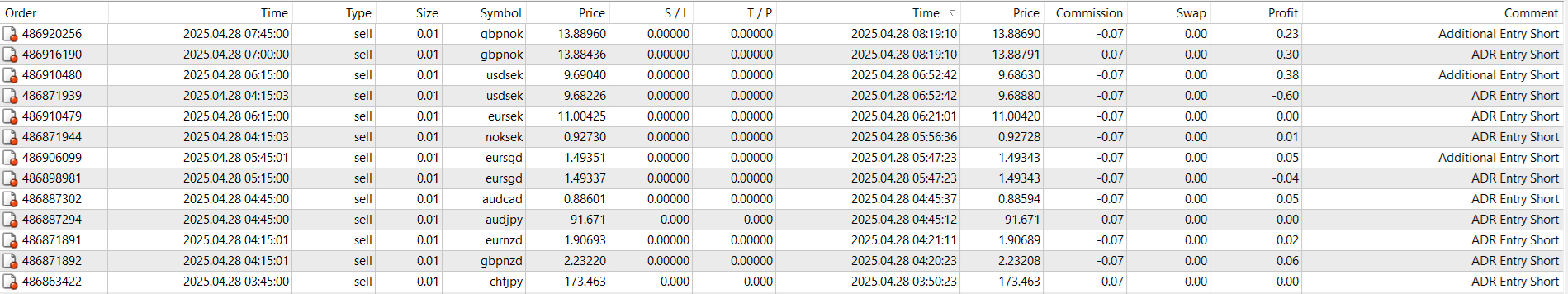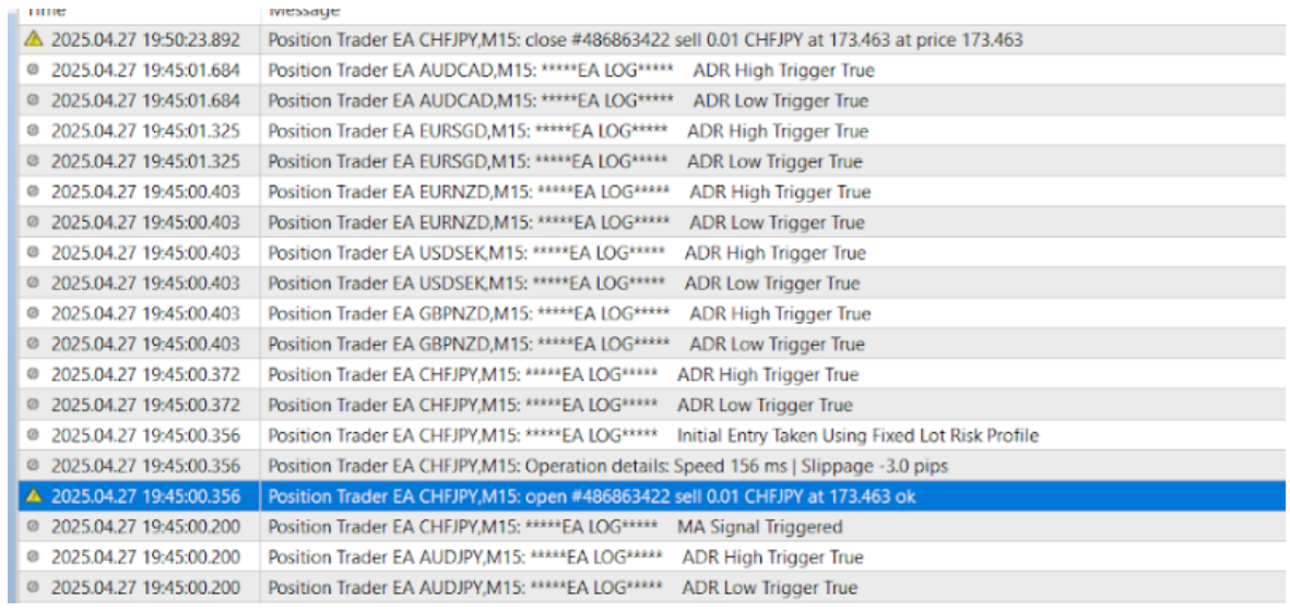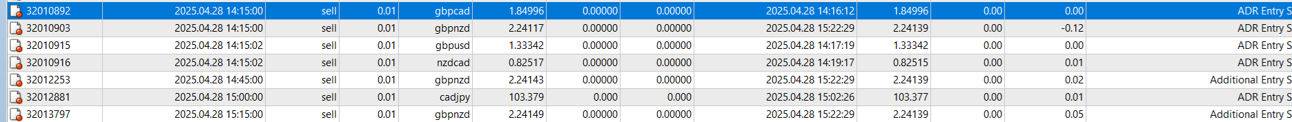 Going back to the settings I am using, I have set it so it only uses 1 ADR as an exit, but as you can see, I am getting closed out at a minimal amount of pips, sometimes even 0. I do find it strange that in the backtests the EA is closing “properly”, but on the demo with the same settings I’ve been getting very different results.