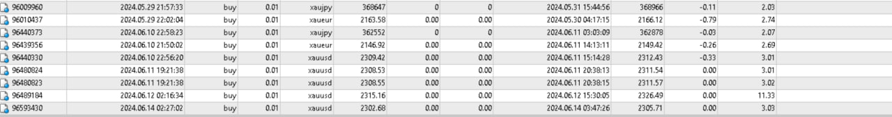 I'm working on shortening SLs and improving strategies ( could be replacing the Japanese session like before in the most stable version instead of the US) but these are records in the last 3 days and there are not an open order now