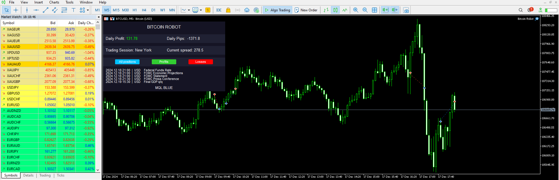 2 positions closed today by Bitcoin Robot - 18 December 2024.