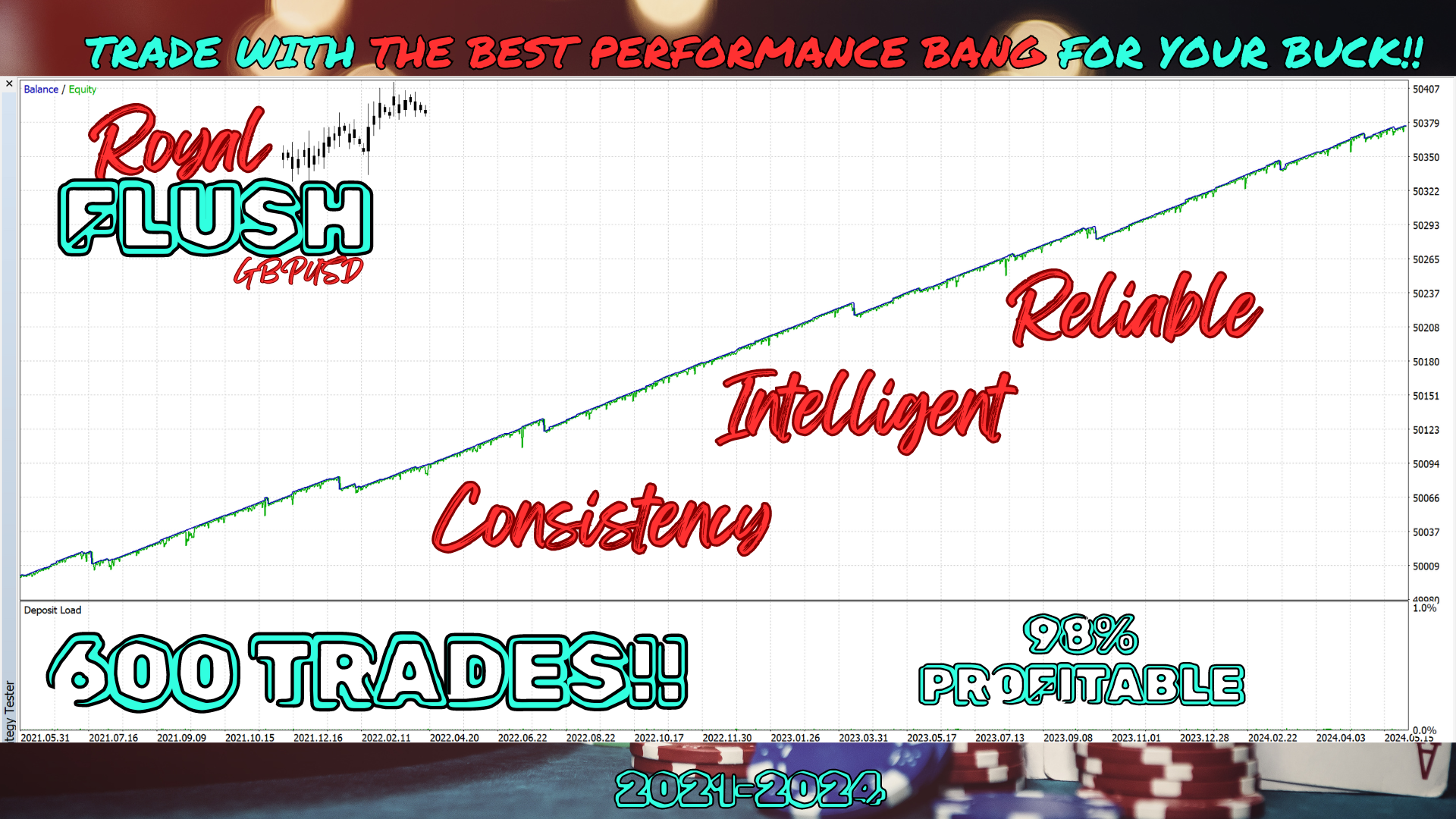 Introducing Royal Flush, the ultimate Expert Advisor designed exclusively for trading GBPUSD on the H1 chart. Royal Flush combines sophisticated algorithms with smart money management techniques to deliver consistent and reliable trading results. Here's why Royal Flush stands out: