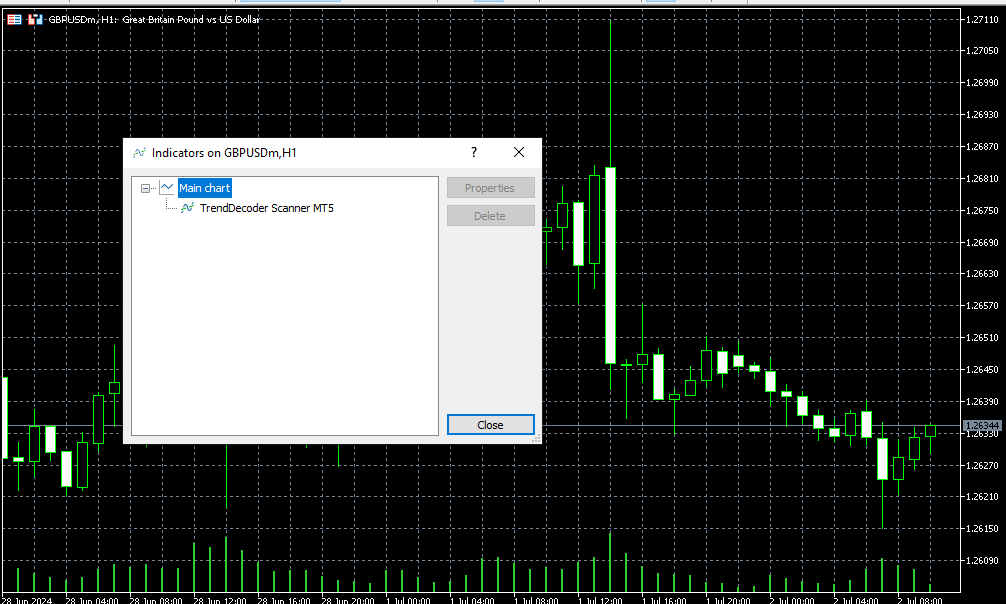 I used all frames ans same times not seen the indecator on chart for all frames and times thal is all assets which been shown in the sofware