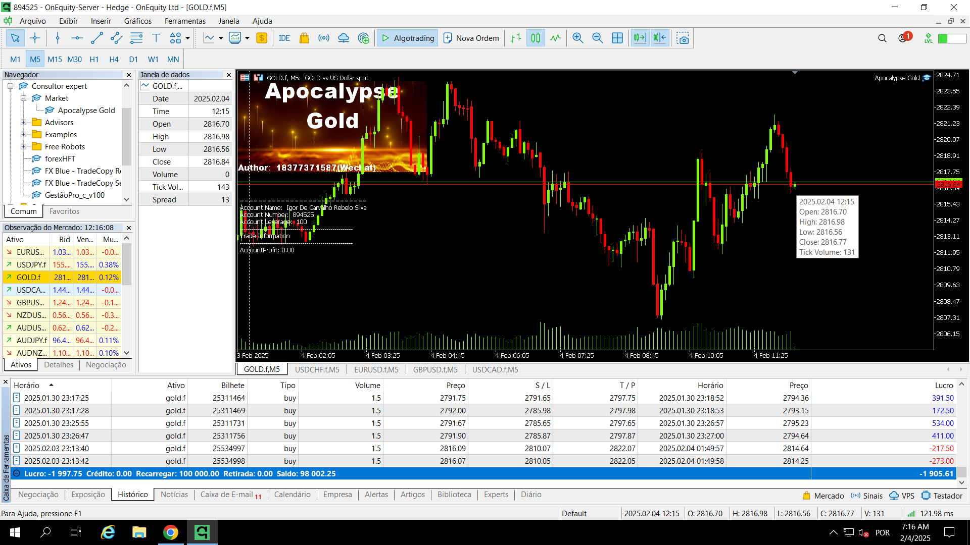 Please follow my signal account:Copy trades of the Apocalypse Gold XAUUSD 02 trading signal for MetaTrader 5 - 49 USD per month - Xian Qin Ceng