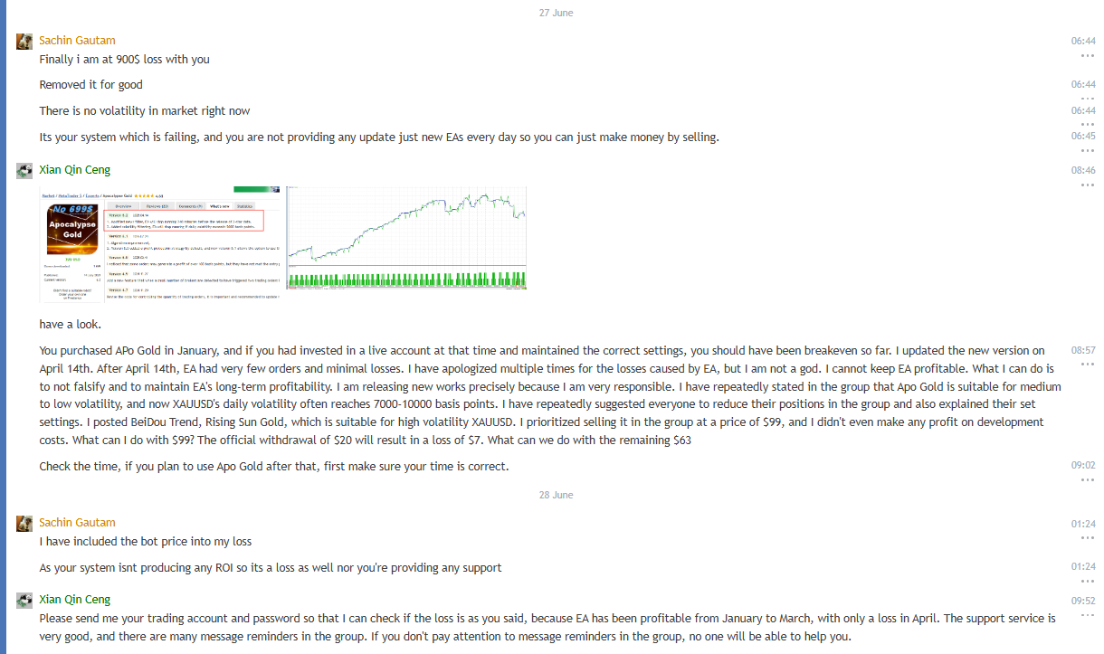 I heard that you only lost $300, which is a happy thing. When you first said that my EA lost $900, it scared me. Chat records will be made public.