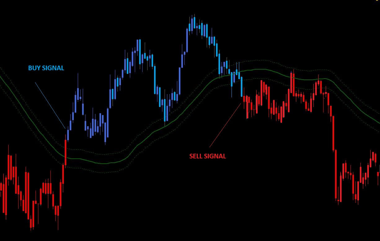 The first candle above a high-low channel or standard deviation is unusually late. Usually breakouts through a channel are more reliable.
