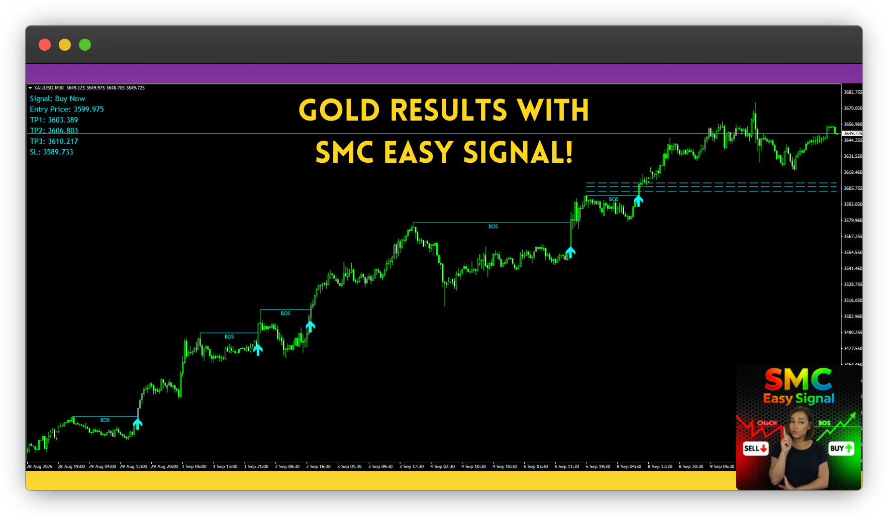 Here is the current chart of gold on the M30 timeframe with SMC Easy Signal!