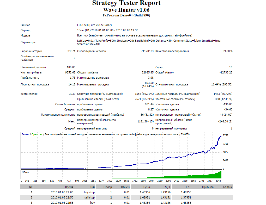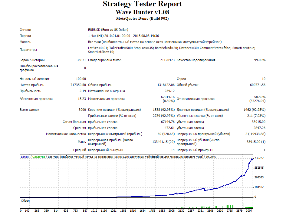 3.Данный советник может некоторое время топтаться на месте а потом резко выдать большой доход.