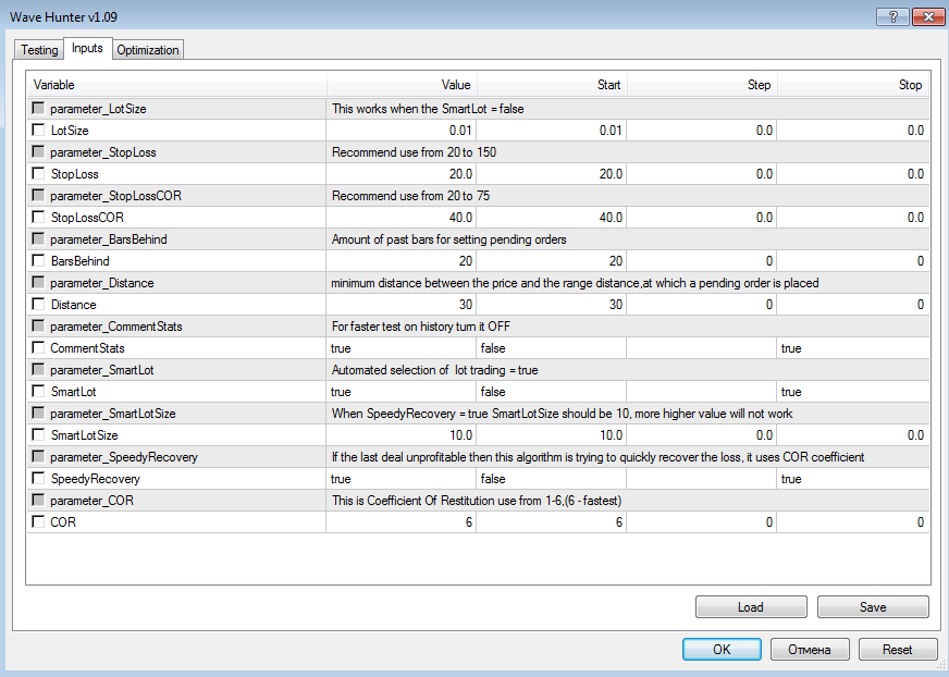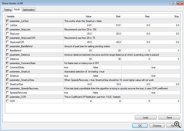 так же может и принести больший убыток, уменьшение параметра COR поможет уменьшить этот убыток,
