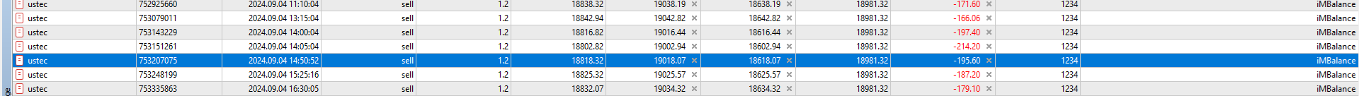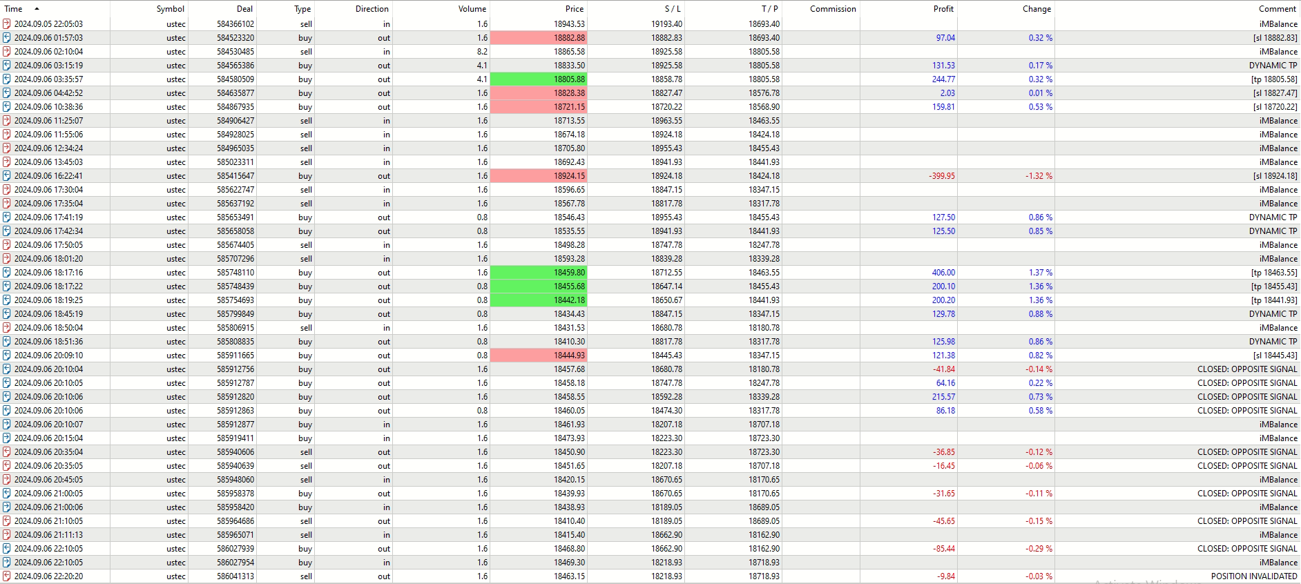 Hi everybody, just a quick update on the past week. Although there were a few losses earlier in the week, the algorithm sticks to its rules by buying or selling iMBalances only in the direction of the multi time frame trend, which over time should have a very high success rate. The EA handled the volatility extremely well profiting through Tokyo session as well as London and New York sessions. Yesterday a gain of almost 2% was achieved and one trade's SL was just tapped and price immediately reversed. Notice how the EA handles positions later in the day when price is weak and hovering around a liquidity pool. The EA attempts to adapt and will not keep losing positions open for too long, and rather closing them if an opposite signal is identified or simply if the position becomes invalidated due to not aligning with the internal confluences.