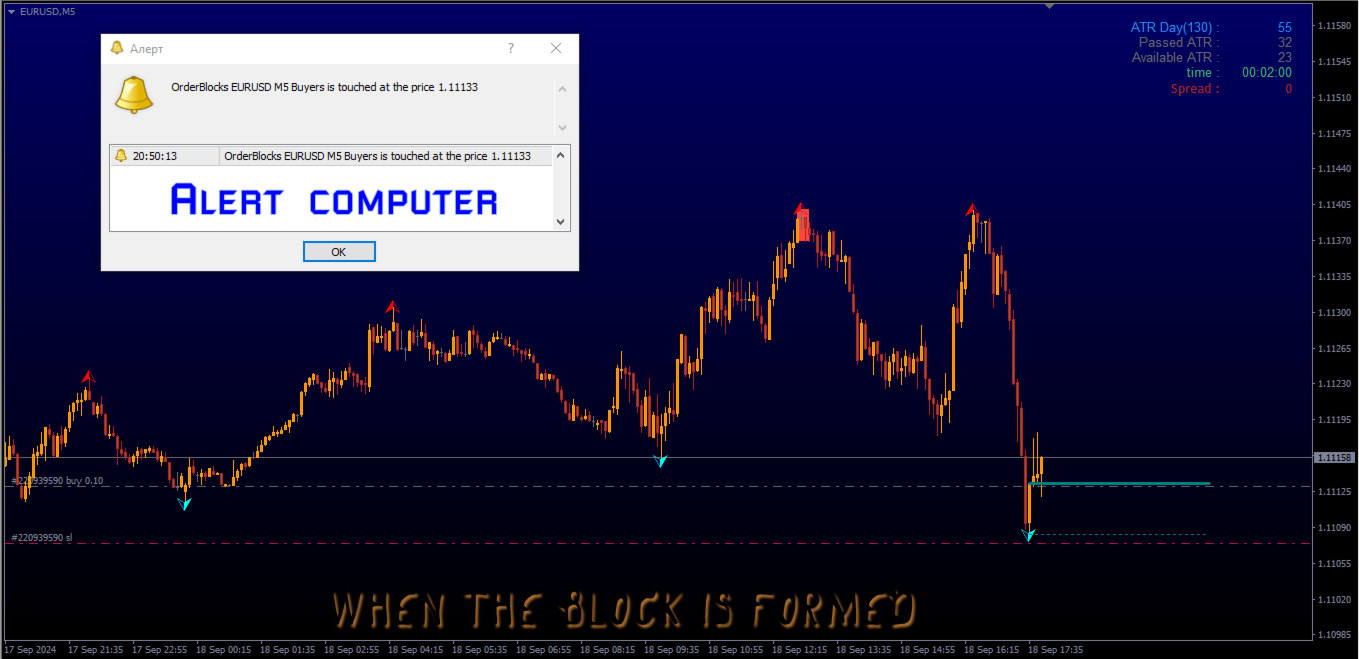 - Sound Alerts: The indicator is equipped with sound alerts that notify you when an order block is formed, ensuring you never miss an important trading opportunity.