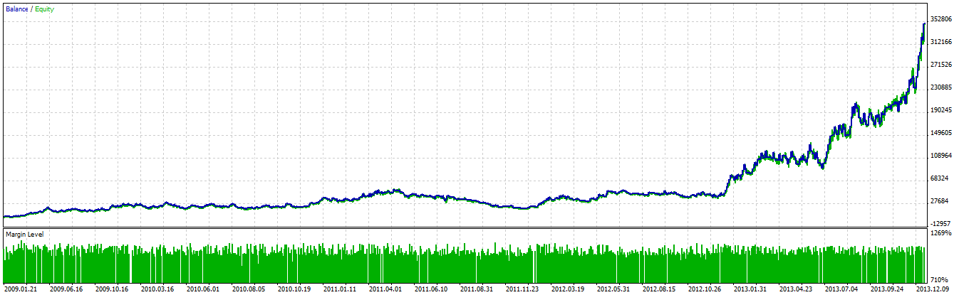 Anyway, this last weekend I decided to test out UT1.3 over a longer time period. So I began optimization tests from 01/01/2009 to 31/12/2013.