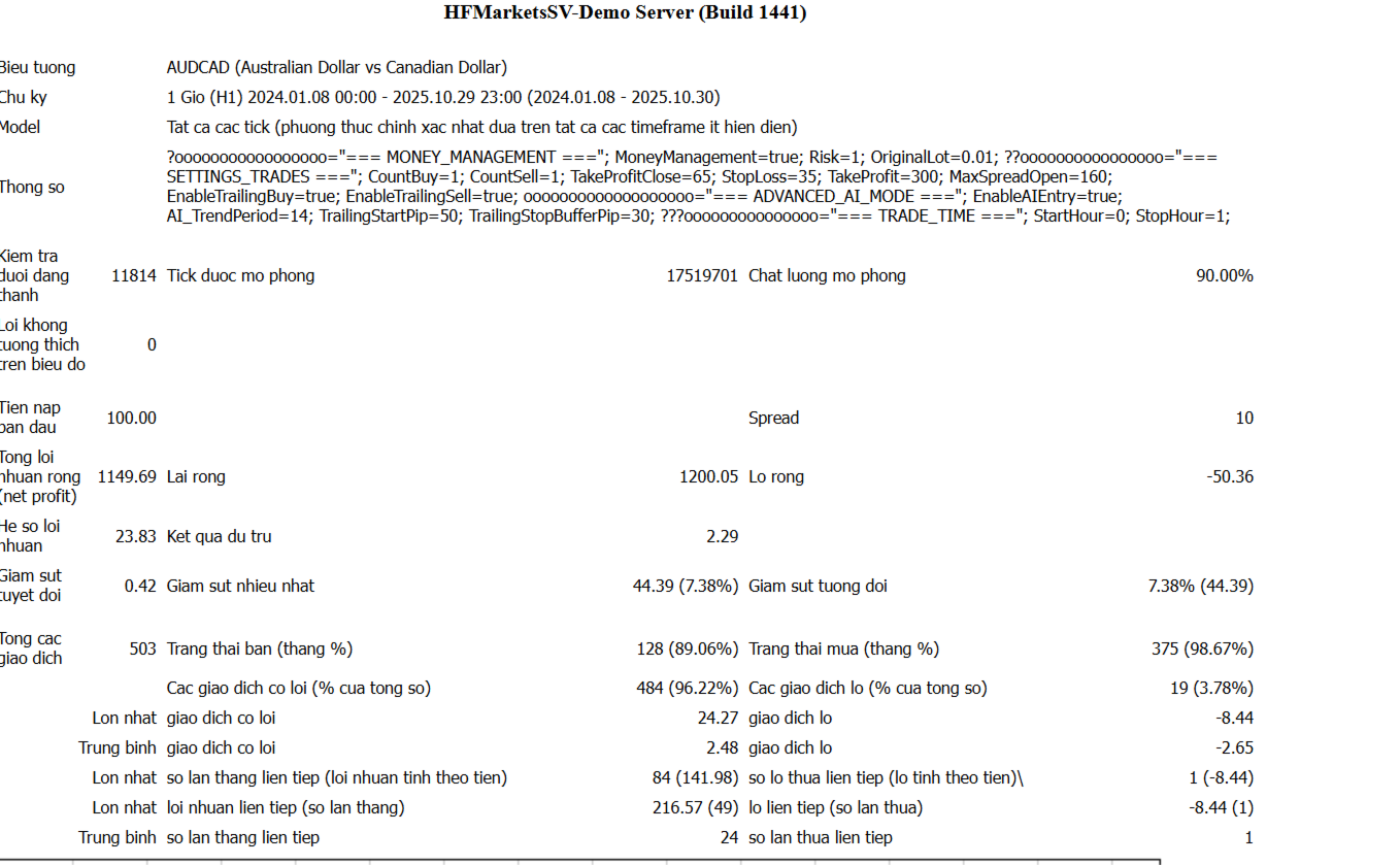The EA operates stably under various market conditions thanks to advanced signal filtering and risk-control mechanisms.