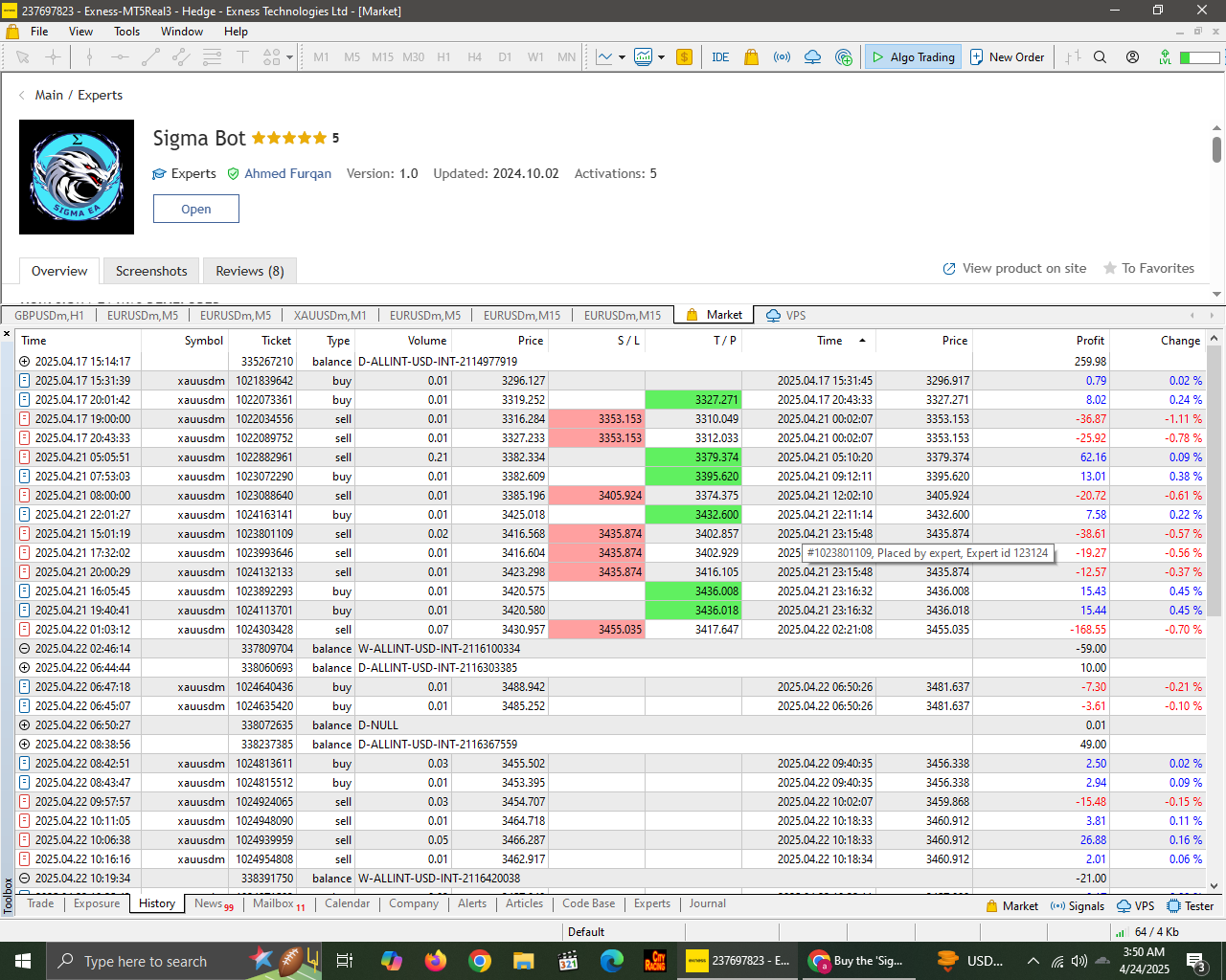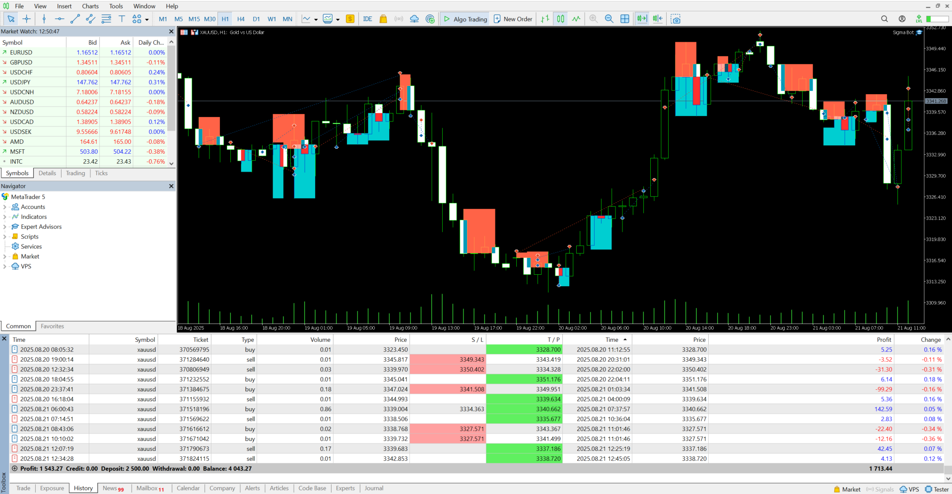 Running this account since 30th May, 2025.Starting Balance was $2500. All the trades were executed by Sigma EA. Gold is a bit risky and is not recommended to trade by Ahmad Sir but the results and accuracy speaks itself. I have activated on pound as well and the results are amazing on low Risk. I would recommend to everyone that must give it a try.