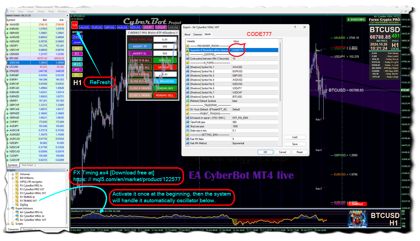 VR CyberBot MT4 Panel Expert 8Pairs 8Shadows Pivot