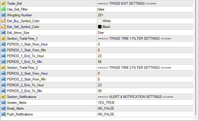 - Trade Exit feature - enable / disable - uses standard MACD to show possible trade exit points (trend exhaustion)