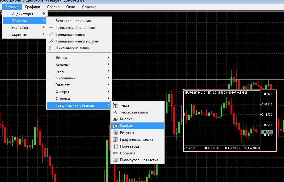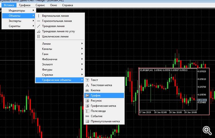 В МТ5 есть графический объект "график", или Вам удобнее Mini Charts?