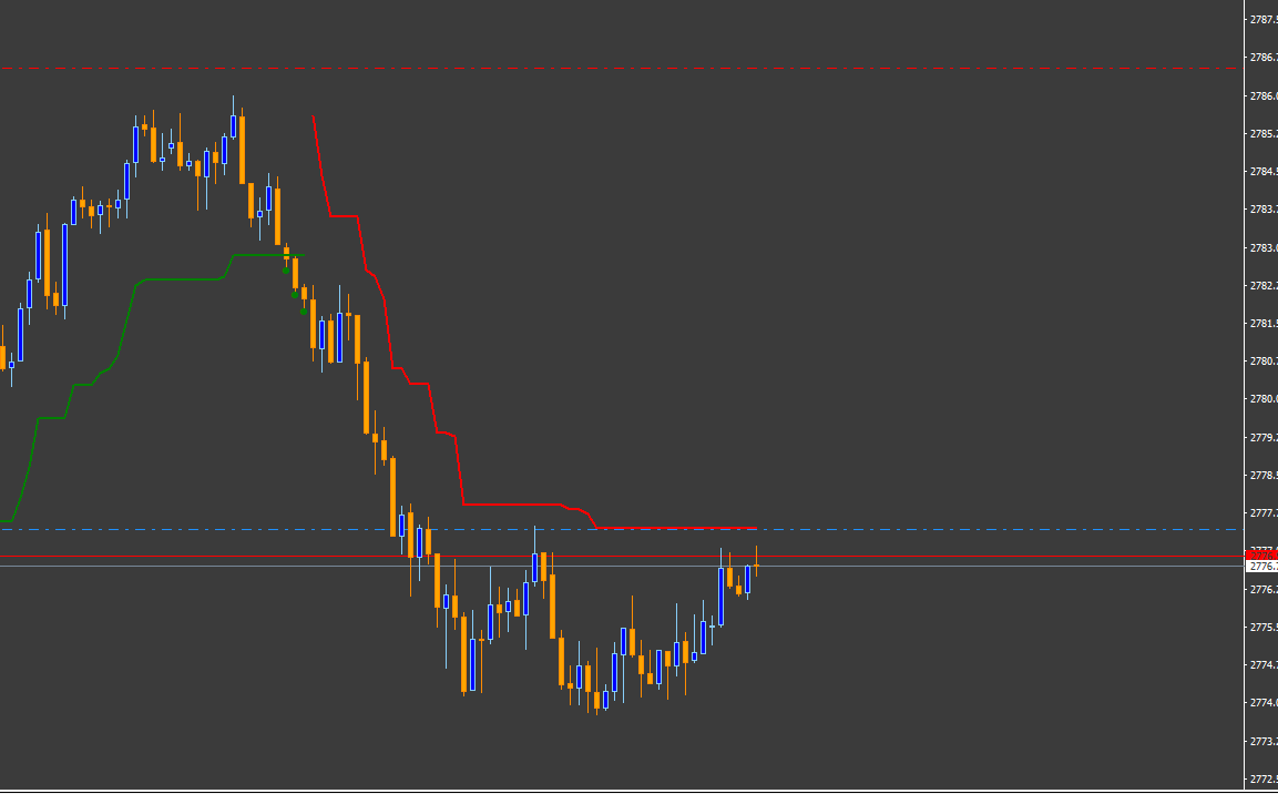 The indicator for MT5 has colored shadows next to the supertrend lines.