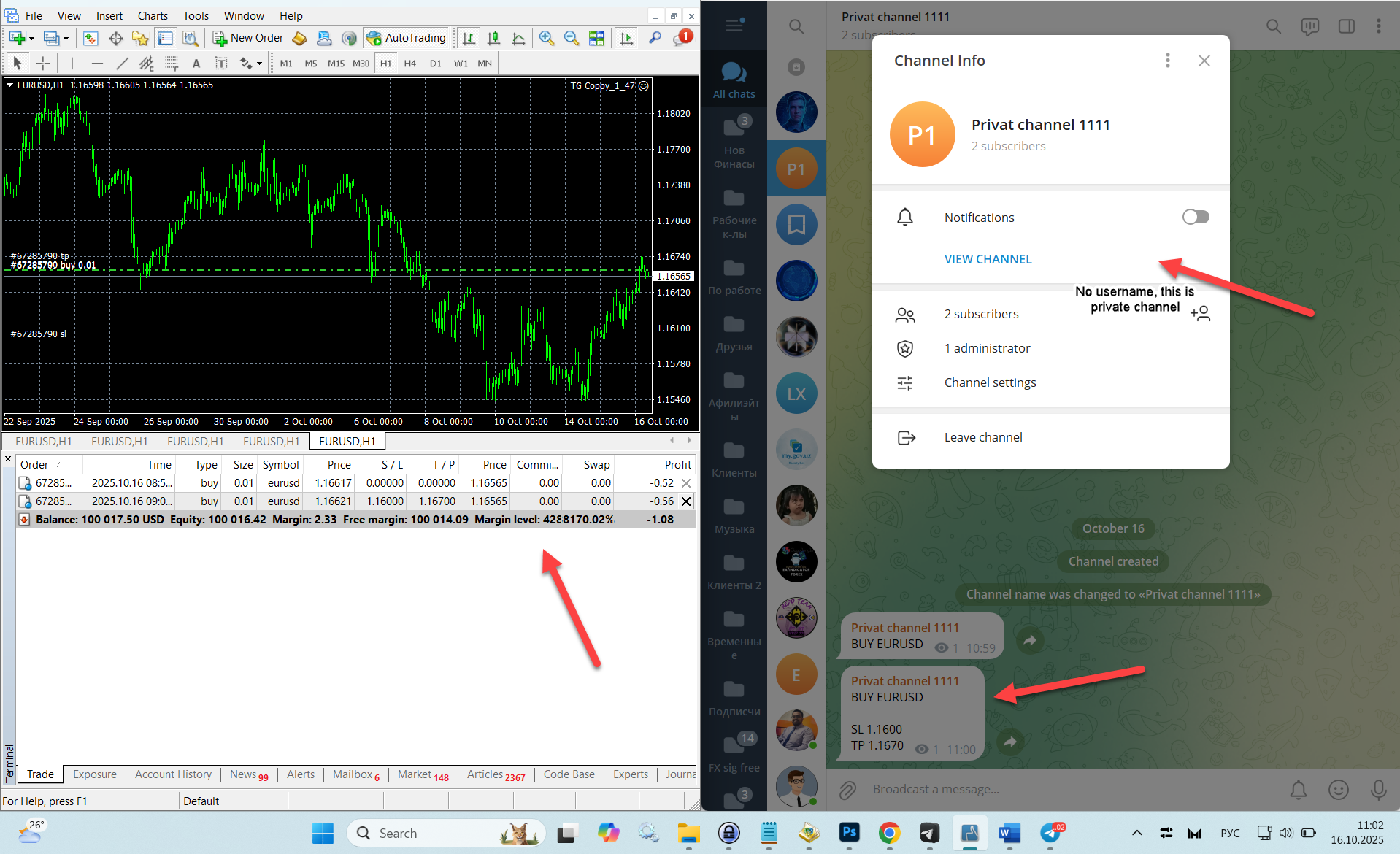 💬 Instead of waiting for real signals, just create your own test channel and send signal messages manually — this way you can check if the copier reads your signals correctly and if all settings work as expected