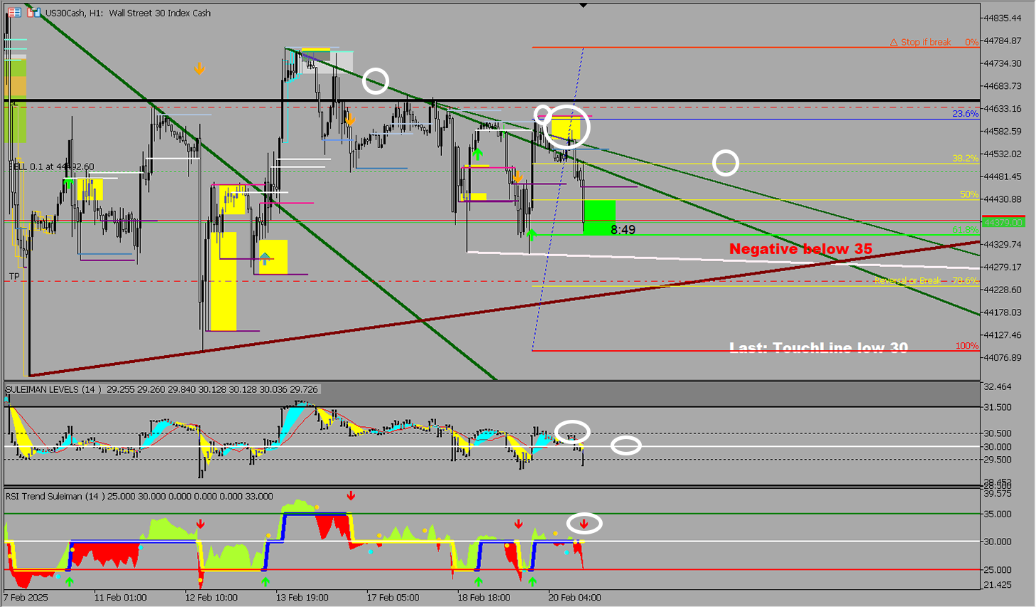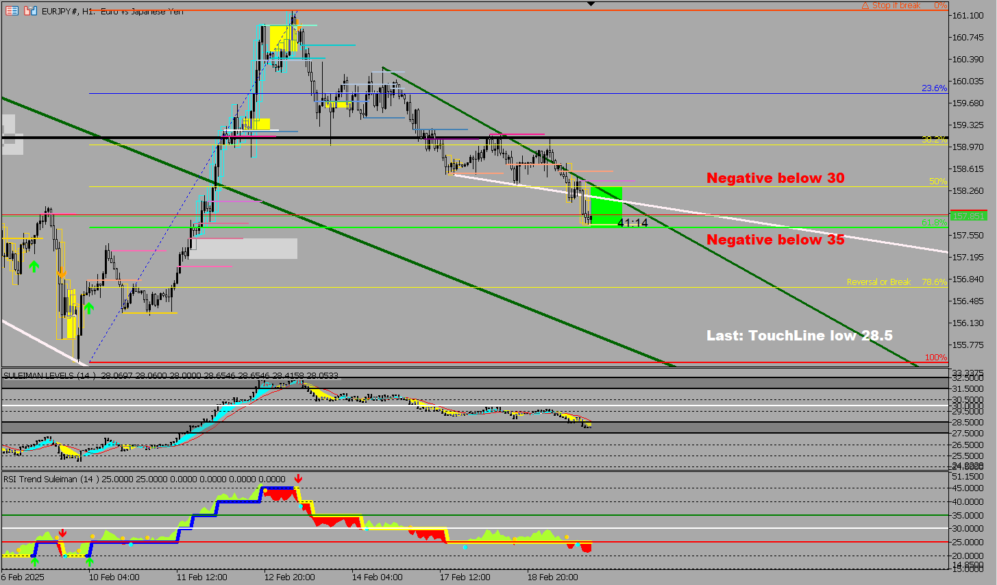 Example of my analysis for a gold trade on the 1-hour timeframe using indicators SULEIMAN LEVELS & RSI Trend V 4: