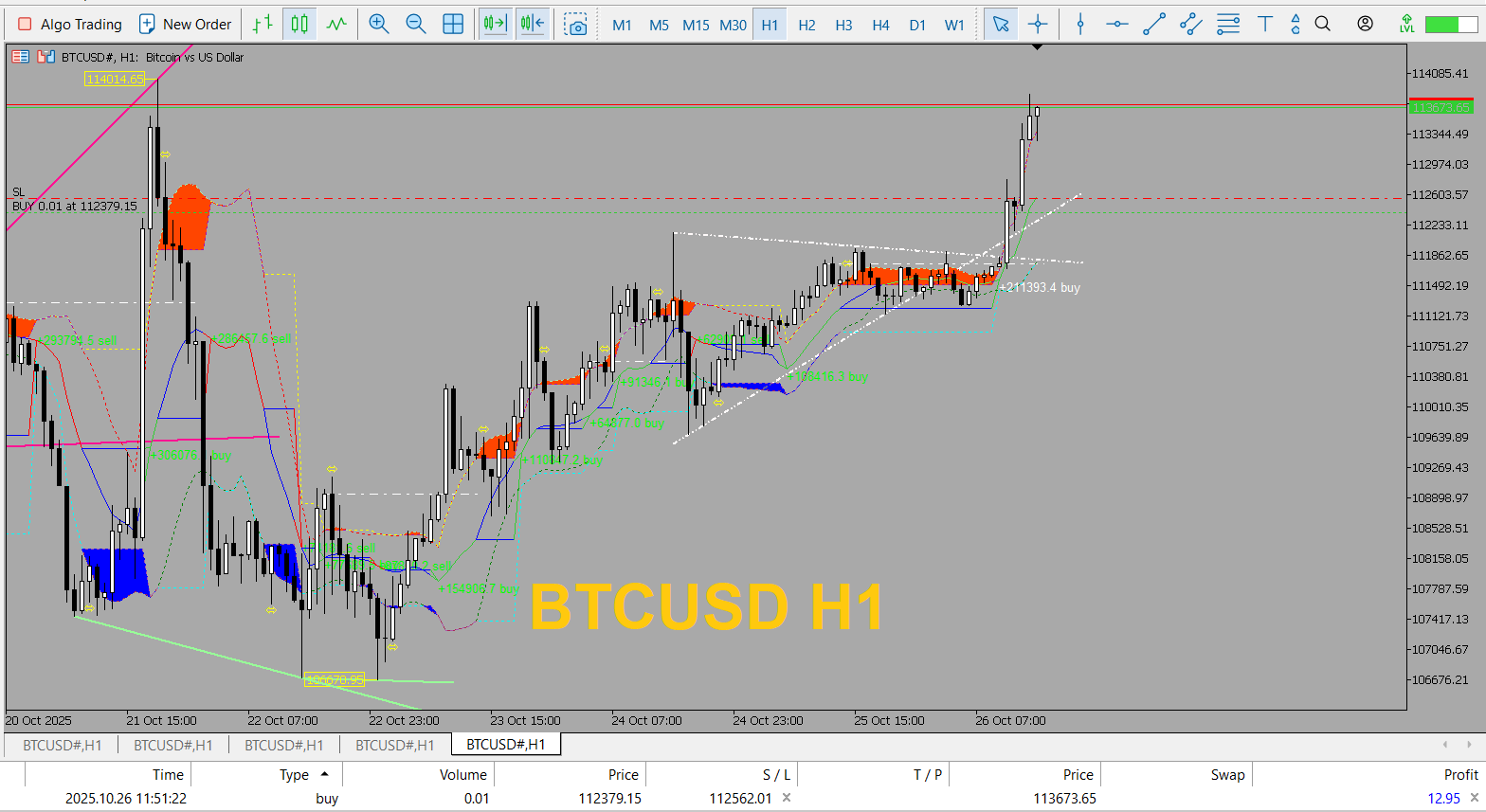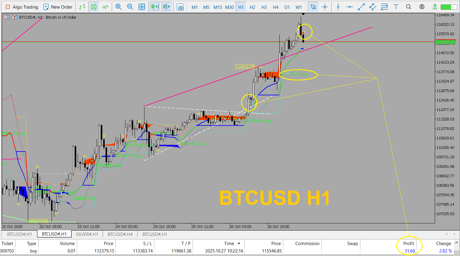 1- open Buy BTCUSD H1-The white pip counter is active - Buy
