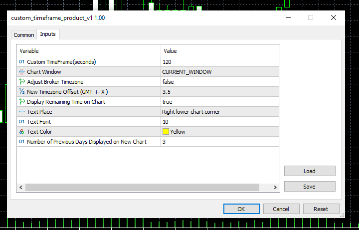 4- New Timezone Offset: Specify the desired GMT offset for your chart by entering a value such as 1, 2, 3, -1, -2, -3, or even decimal values like 1.2 or 3.4. This flexibility allows you to set a custom timezone that may not correspond to any specific country's standard time.