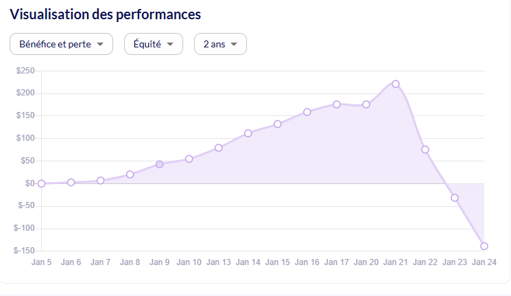 Le robot semblait prometteur, 13 jours de gains pour un total de 200 dollars, et en 4 jours de pertes de 350 dollars, finalement à perdu plus en multipliant les pertes que ce qu'il a gagné. A noter que j'ai augmenter la taille des lots car j'ai augmenter le capital pile poile au niveau des pertes. Il semble que depuis la version 1.14 rien ne va plus. Très déçu j'arrête provisoirement le robot avant qu'il me bouffe tout mon capital.