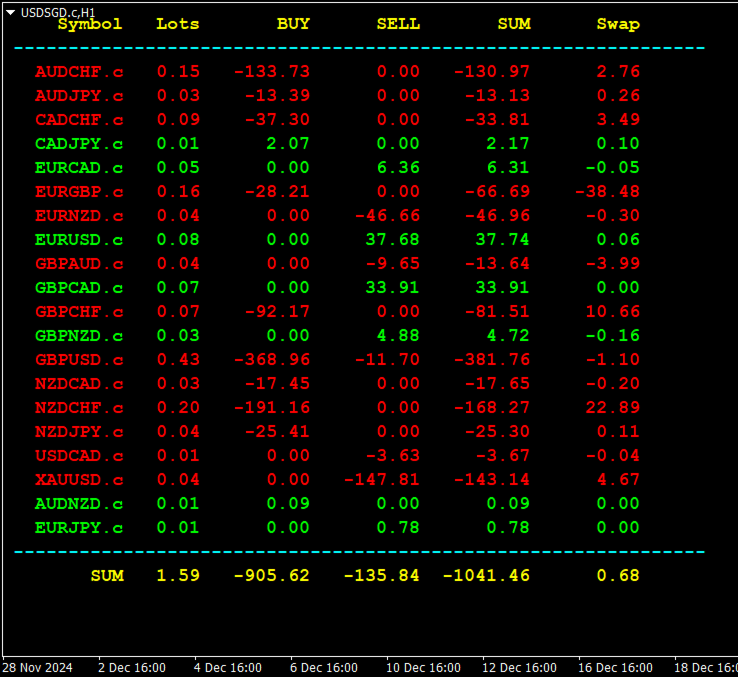 The indicator summarizes all open positions.