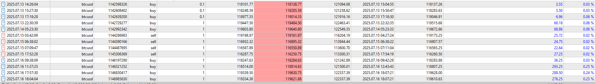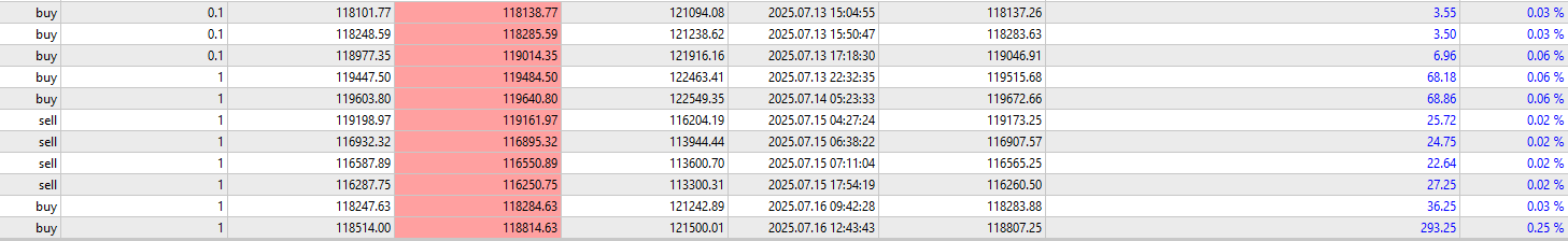 The two orders without stop loss were traded manually by myself, and the rest were completed by EA.