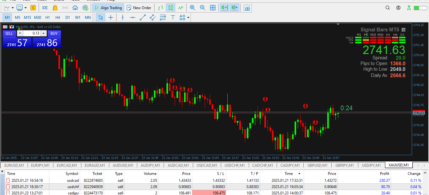 Then I updated the Indicator code to print very accurate signal arrows. The small new arrows work best from M15. The results are stunning.