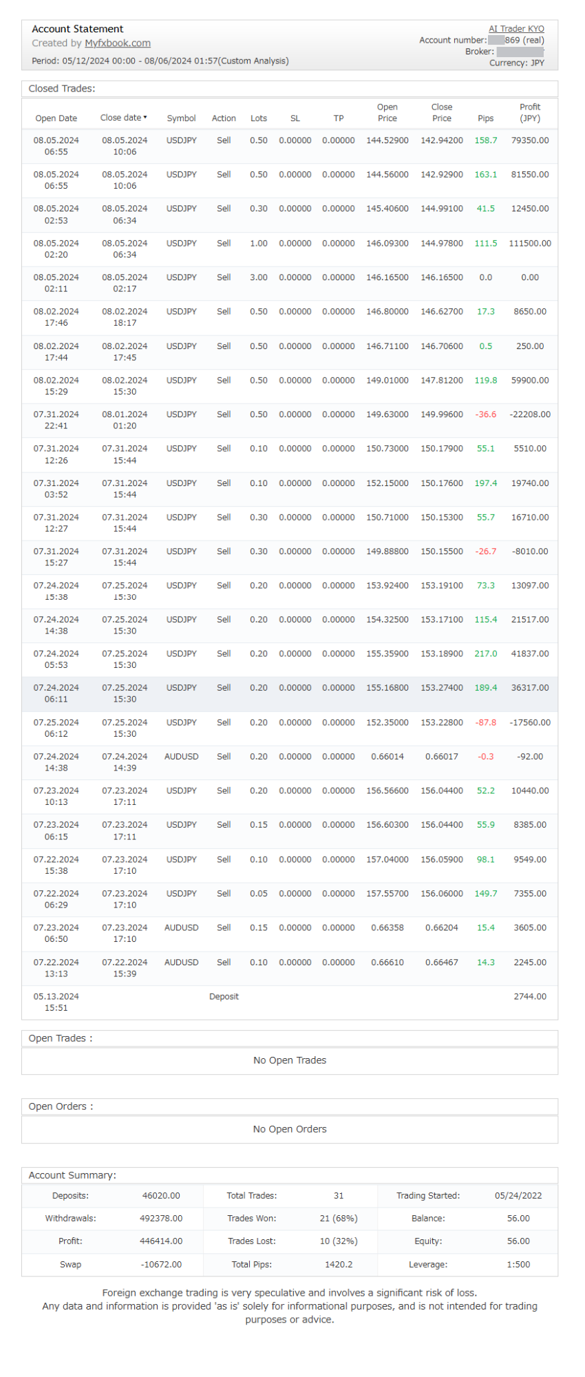 The record you see comes from an earlier stage where we used GPT-3.5 on MetaTrader 4. Despite its short-term approach, GPT-3.5 effectively captured market waves using technical data, resulting in a quick profit example.