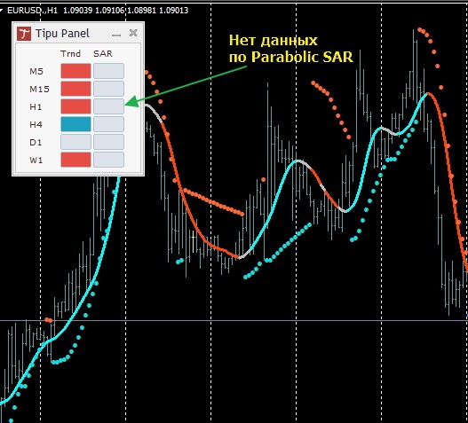 Не показывает данные по Parabolic SAR