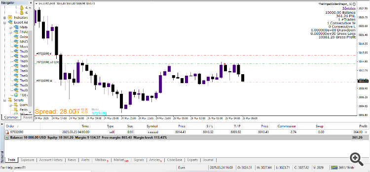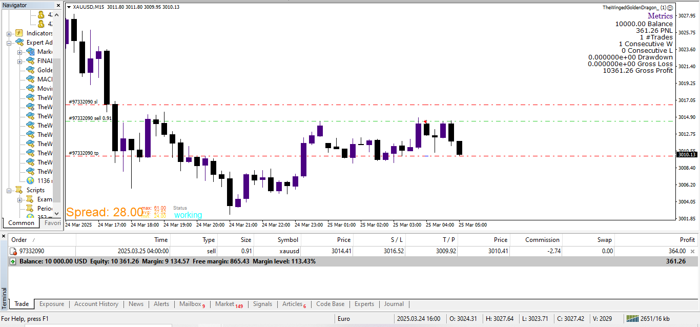 Today's win on XAUUSD 15mins Asian session, using the Winged Golden Dragon Bot!