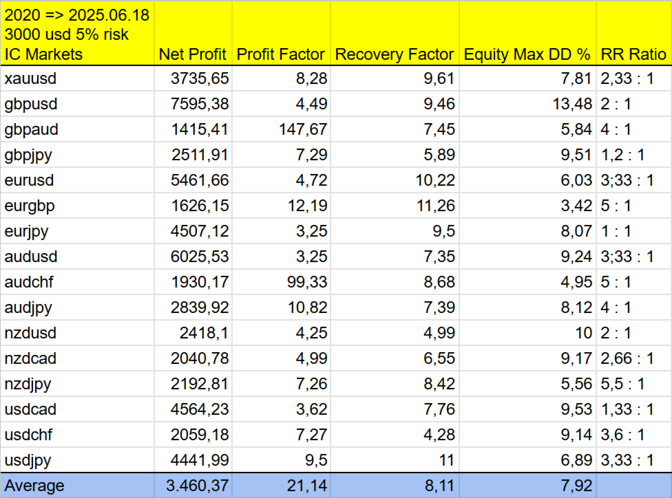Zenox utilizza sempre livelli predefiniti di stop loss e take profit e impiega ordini stop buy/sell per aprire posizioni con un elevato rapporto di rendimento. È consentita una sola posizione di acquisto e una di vendita per coppia, garantendo una gestione disciplinata del rischio. Non viene utilizzato alcun trailing stop, il che riduce lo slippage e aumenta sia i profitti che la stabilità. Vengono evitate pericolose strategie di griglia o martingala. È importante sottolineare che non ho ottimizzato eccessivamente i parametri dell'indicatore: molte impostazioni hanno funzionato bene, rafforzando la mia fiducia nella sua stabilità.