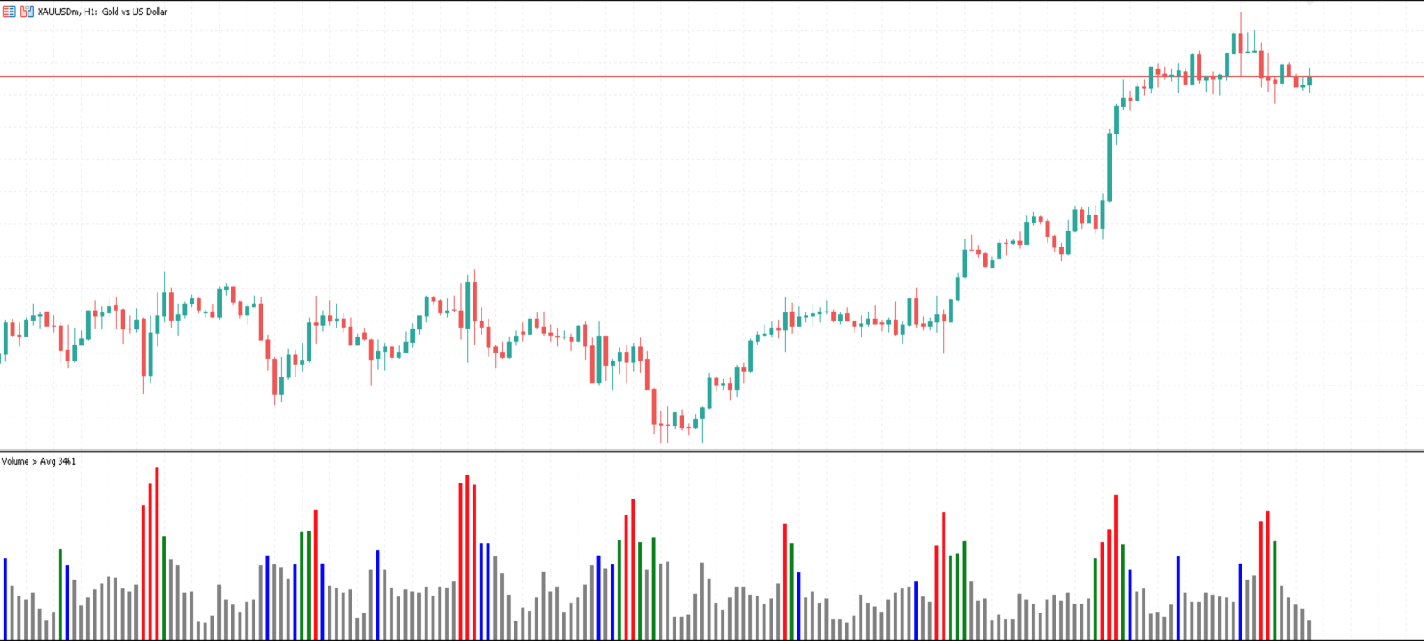 - Gray: Volume below average.