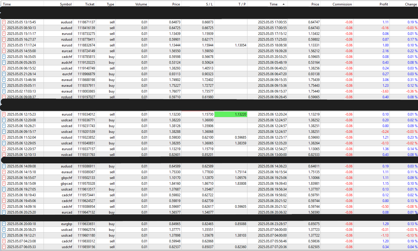 However, in the screenshots I’ve shared, you can see trades made with the 5-minute setfile. This setup requires a bit more activity – sometimes you have to open additional trades when a second or third signal appears. But that’s where the Bomber Utility really shines: it manages the trades beautifully. I closed a few positions manually, but most were taken care of by the EA.